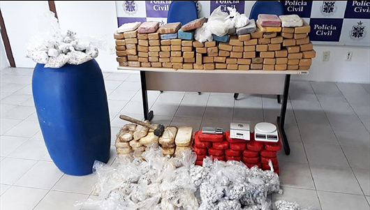 Leia maisOs 200 kg de pasta base de cocaína, maconha e crack estavam enterrados dentro da casa no Km 17, uma